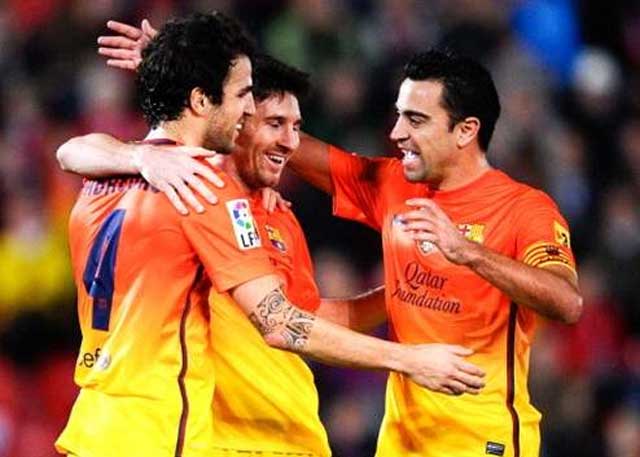 وهو الفوز الرابع على التوالي للفريق الكاتالوني محليا والعاشر هذا الموسم ويدين به الى نجمه الارجنتيني ليونيل ميسي الذي سجل ثنائية في الدقيقتين 44 و70 رافعا رصيده الى 76 هدفا هذا العام في مختلف المسابقات (بينها ايضا الاهداف المسجلة مع منتخب بلاده) وحطم رقم الملك الاسطوري البرازيلي بيليه (75 هدفا).