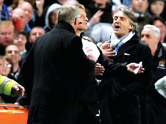 سيدخل مانشستر يونايتد المتصدر الى موقعته مع جاره اللدود مانشستر سيتي حامل اللقب وثاني الترتيب وسط اجواء متشنجة ستزيد من حدة التوتر بين الطرفين، وذلك بعدما تسبب مدرب الثاني الاسكتلندي اليكس فيرغسون بحرب كلامية مع نظيره الايطالي روبرتو مانشيني لاعتباره ان الحكام اهدوا ال"سيتيزينز" الكثير من ركلات الجزاء خلال الاشهر ال12 الاخيرة.
