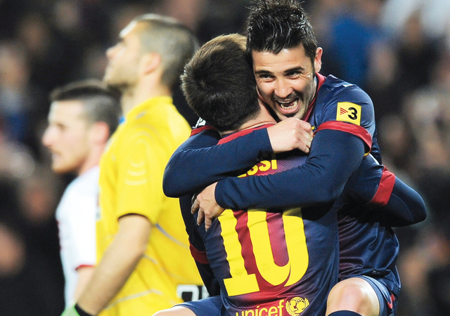 وتألق ميسي أفضل لاعب في العالم ليساهم في الهدف الاول الذي سجله ديفيد بيا مهاجم اسبانيا قبل ان يهز المهاجم الارجنتيني الشباك مرة في كل شوط.