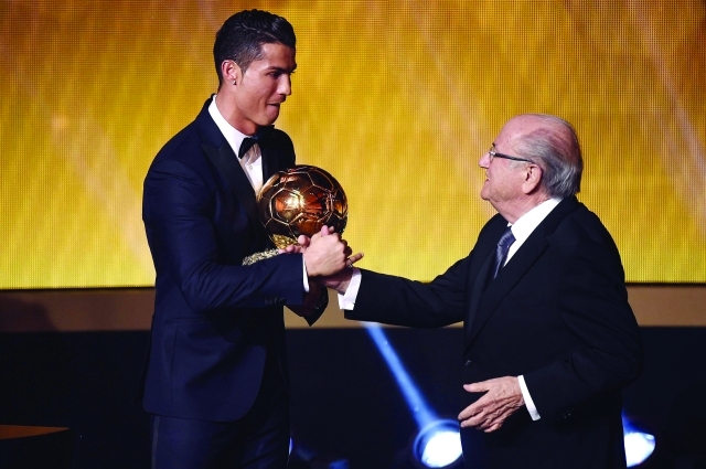 توج البرتغالي كريستيانو رونالدو بجائزة الكرة الذهبية لأفضل لاعب في العالم لعام 2014، للمرة الثالثة في تاريخه.
