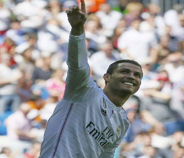 وهذه هي أول مرة يحقق فيها رونالدو خماسية بالدوري الإسباني وارتفع رصيده إلى 36 هدفا متفوقا بأربعة أهداف على ميسي الذي يملك فرصة لزيادة غلته الشخصية حين يلعب مع برشلونة في مواجهة سيلتا فيجو في وقت لاحق اليوم.