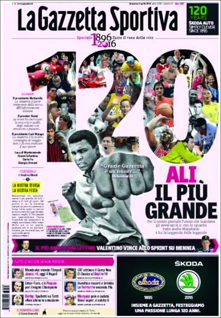 صحيفة لاغازيتا ديلو سبورت الإيطالية التي احتفلت يوم أمس بالذكرى 120 على صدورها، أفردت مساحة واسعة في داخل العدد حول مباراة الكلاسيكو.