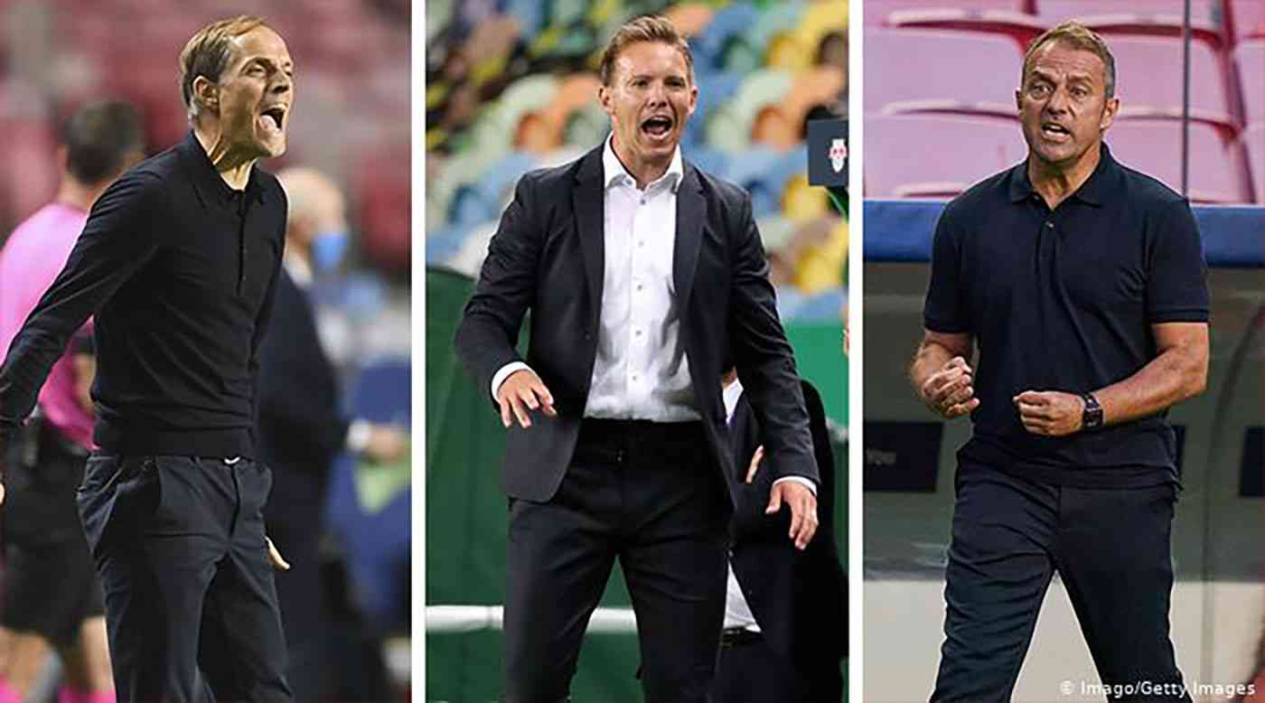 ويقود هانزي فليك فريق بايرن ميونيخ الألماني، كما يقود المدرب الشاب يوليان ناغلسمان (33 عاما) فريق لايبزغ الألماني فيما يأتي المدرب الألماني الثالث توماس توخيل مع فريق باريس سان جيرمان الفرنسي.