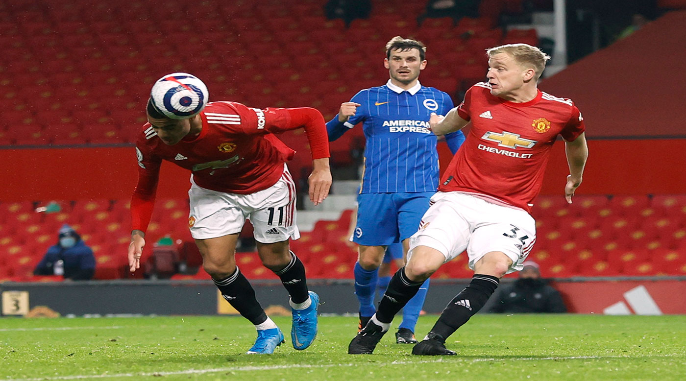 وواصل يونايتد ضغطه وحسم له مهاجمه مايسون غرينوود النتيجة في صالحه عندما تلقى كرة عرضية من الفرنسي بول بوغبا وتابعها برأسه من مسافة قصيرة داخل الشباك رغم تدخل الحارس والمدافع بن وايت (ق83).