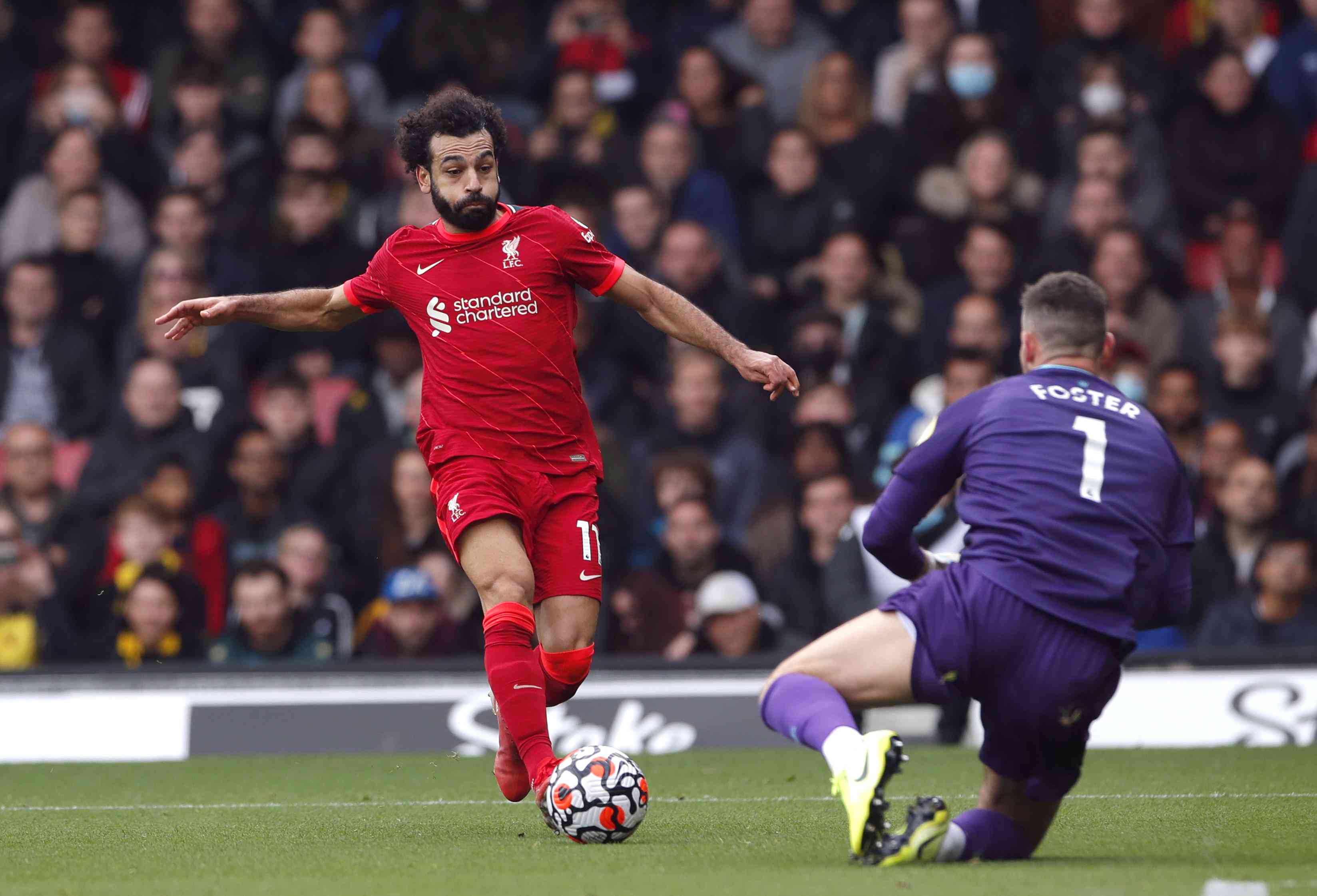 ومرر صلاح كرة رائعة بوجه القدم الخارجي إلى ساديو ماني ليفتتح التسجيل، وأضاف هدفا بمهارة فردية ليجعل النتيجة 4-صفر في أول مباراة لصاحب الأرض تحت قيادة مدربه الجديد كلاوديو رانييري.
