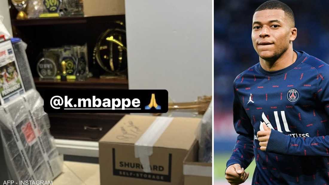 وفي إحدى الصور المنشورة، شكر الفنان اللاعب البالغ من العمر 23 عاما على إهدائه قميصا موقعا. وفي الخلفية، ظهر رف به بعض جوائز مبابي معبأة ومغلفة، إلى جانب صناديق من الورق المقوى، وصحف مغلفة أيضا تتحدث عنه.