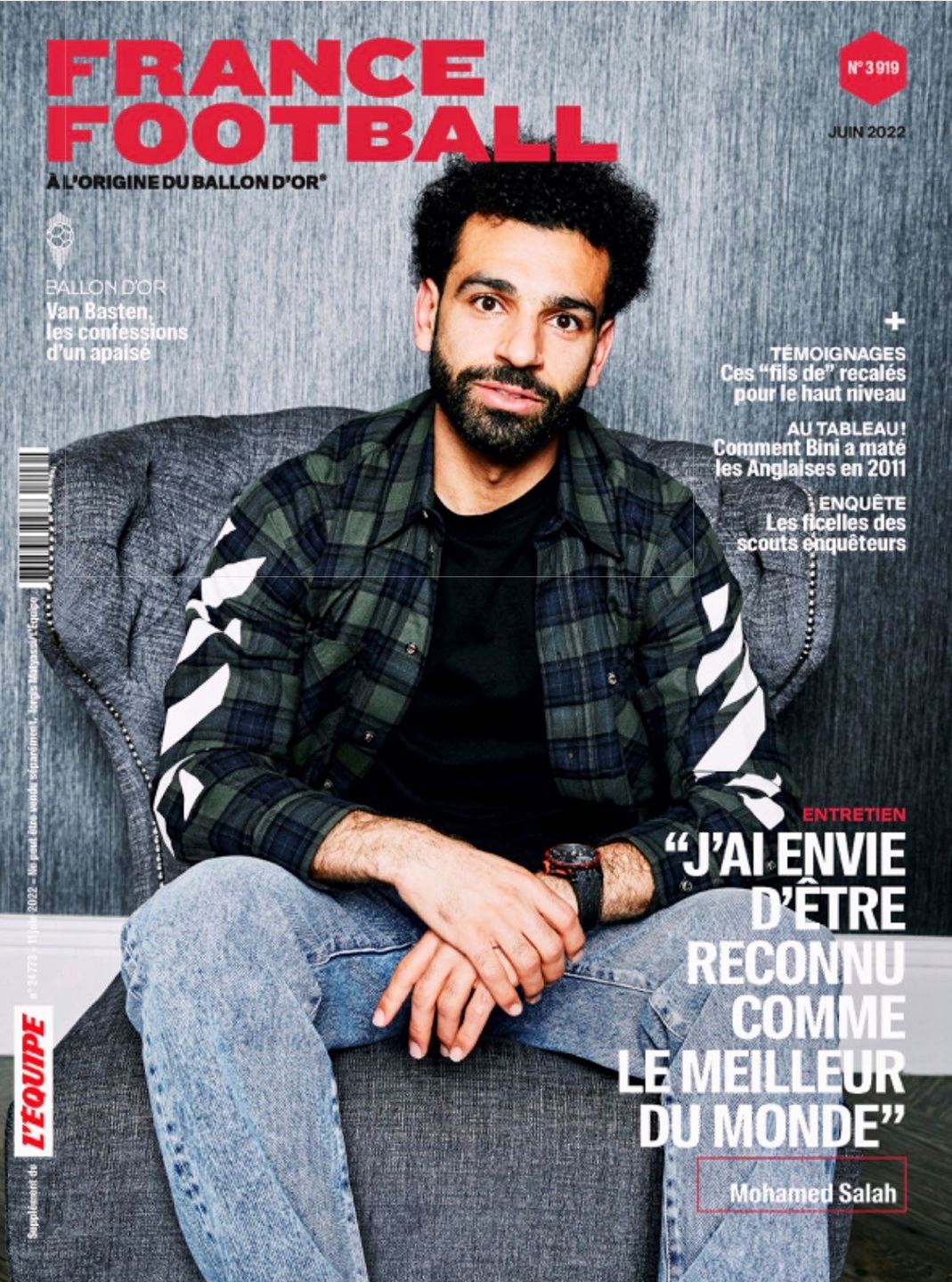 وتصدر صلاح غلاف العدد الجديد من مجلة "فرانس فوتبول"، قائلا: "أريد أن أكون الأفضل في العالم".