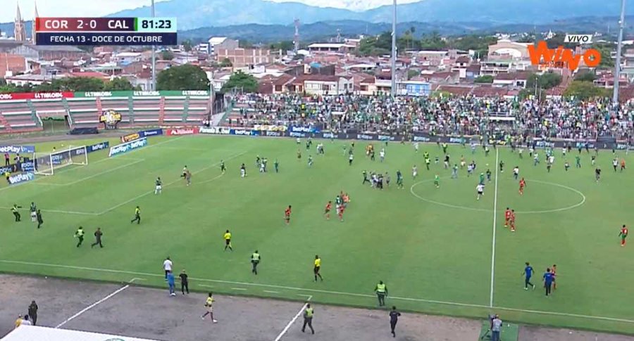 اقتحمت جماهير نادي ديبورتيفو كالي، ملعب مباراة فريقها أثناء مواجهة نظيره كورتولا ضمن منافسات الدوري الكولومبي، للاعتداء على لاعبيها.