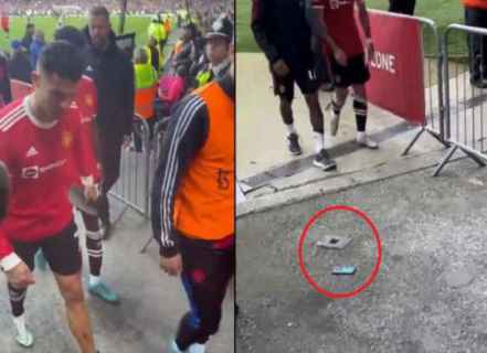وكان رونالدو انتزع هاتفاً محمولا من يد مشجع صغير بعد هزيمة اليونايتد أمام إيفرتون وقام بإلقائه أرضاً، كتعبير عن غضبه عقب هزيمة فريقه.