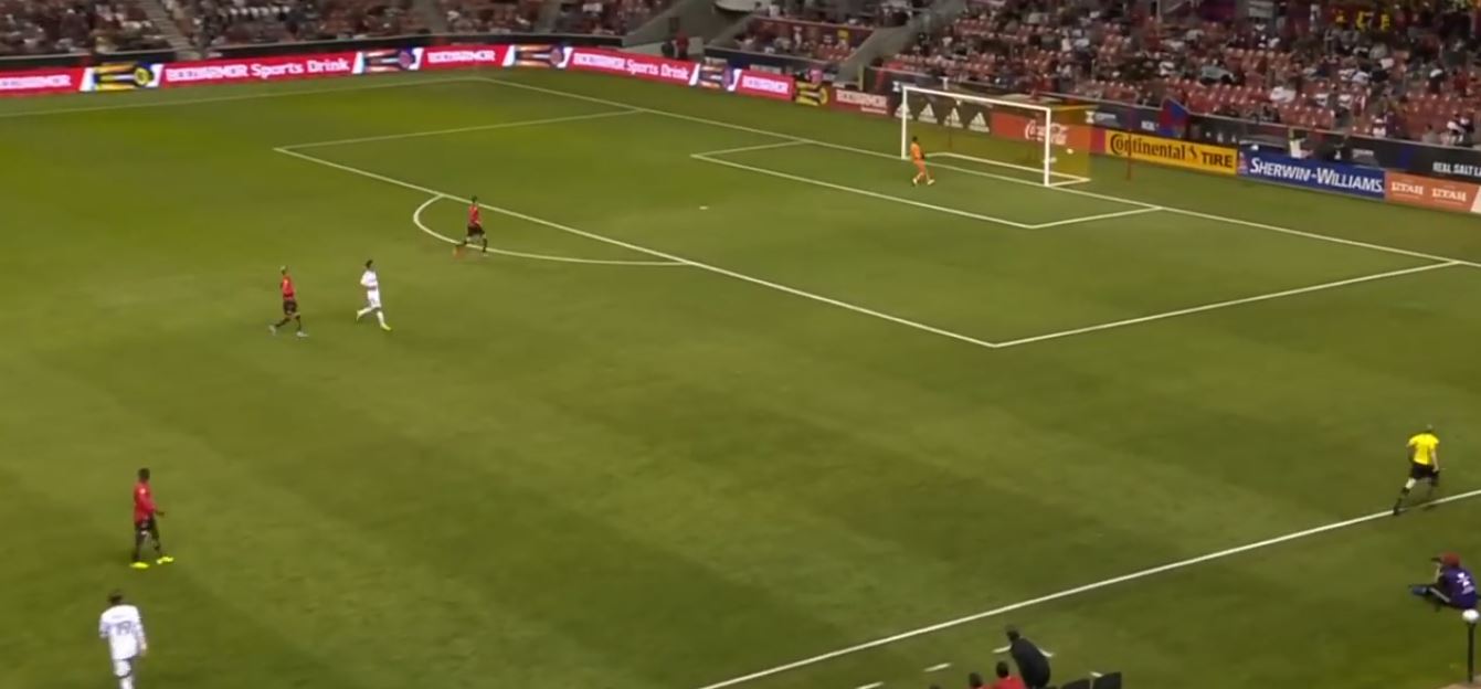 ومرر أحد لاعبي الدفاع في "سولت ليك" الكرة إلى زميله Aaron Herrera فانتهزها هيريرا فرصة حين لاحظ في الدقيقة 17 من المباراة، أن جوزيه هيرنانديز حارس مرمى "أطلس" كان بعيدا بعض الشيء عن مرماه.