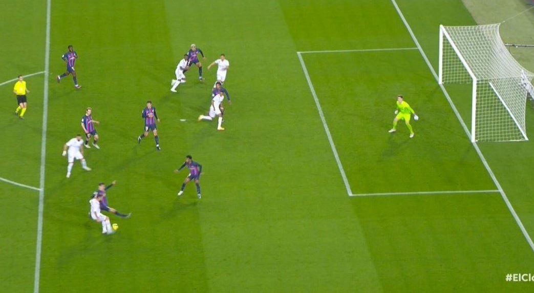 وكان أسينسيو أحرز الهدف الثاني للريال في الدقيقة 82، عندما كانت تشير النتيجة للتعادل الإيجابي 1/1، لكن حكم المباراة دي بورغوس ألغى الهدف بداعي التسلل بعد العودة لتقنية الفار في لقطة جدلية للغاية.
