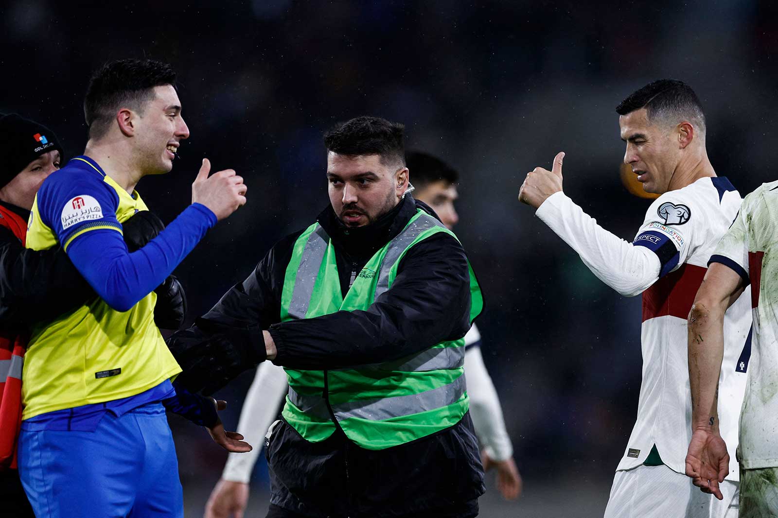 اقتحم مشجع ملعب مباراة منتخب لوكسمبورغ مع ضيفه منتخب البرتغال، أمس، في التصفيات المؤهلة لبطولة كأس الأمم الأوروبية (يورو 2024)، مرتدياً قميص فريق النصر السعودي.