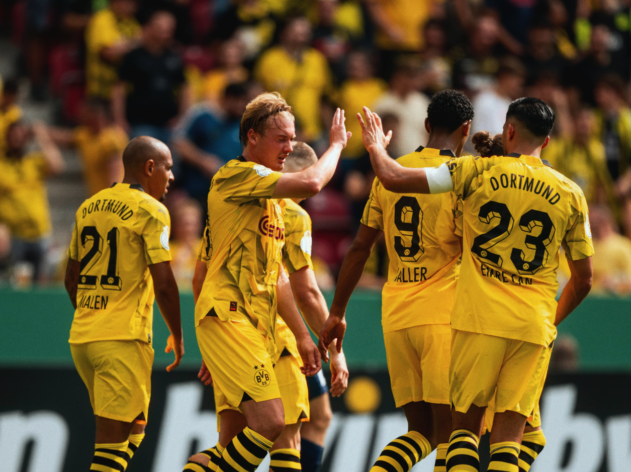 وسجل سباستيان هيلير الهدفين الأول والثالث لدورتموند في الدقيقتين 22 و35 وتكفل جوليان براندت ومارسيل سابيتزر ودونيايل مالين ويوسوفا موكوكو بالأهداف الأربعة الأخرى في الدقائق 24 و57 و80 و85 فيما سجل نيلس جانس الهدف الوحيد لأصحاب الأرض في الدقيقة 34.