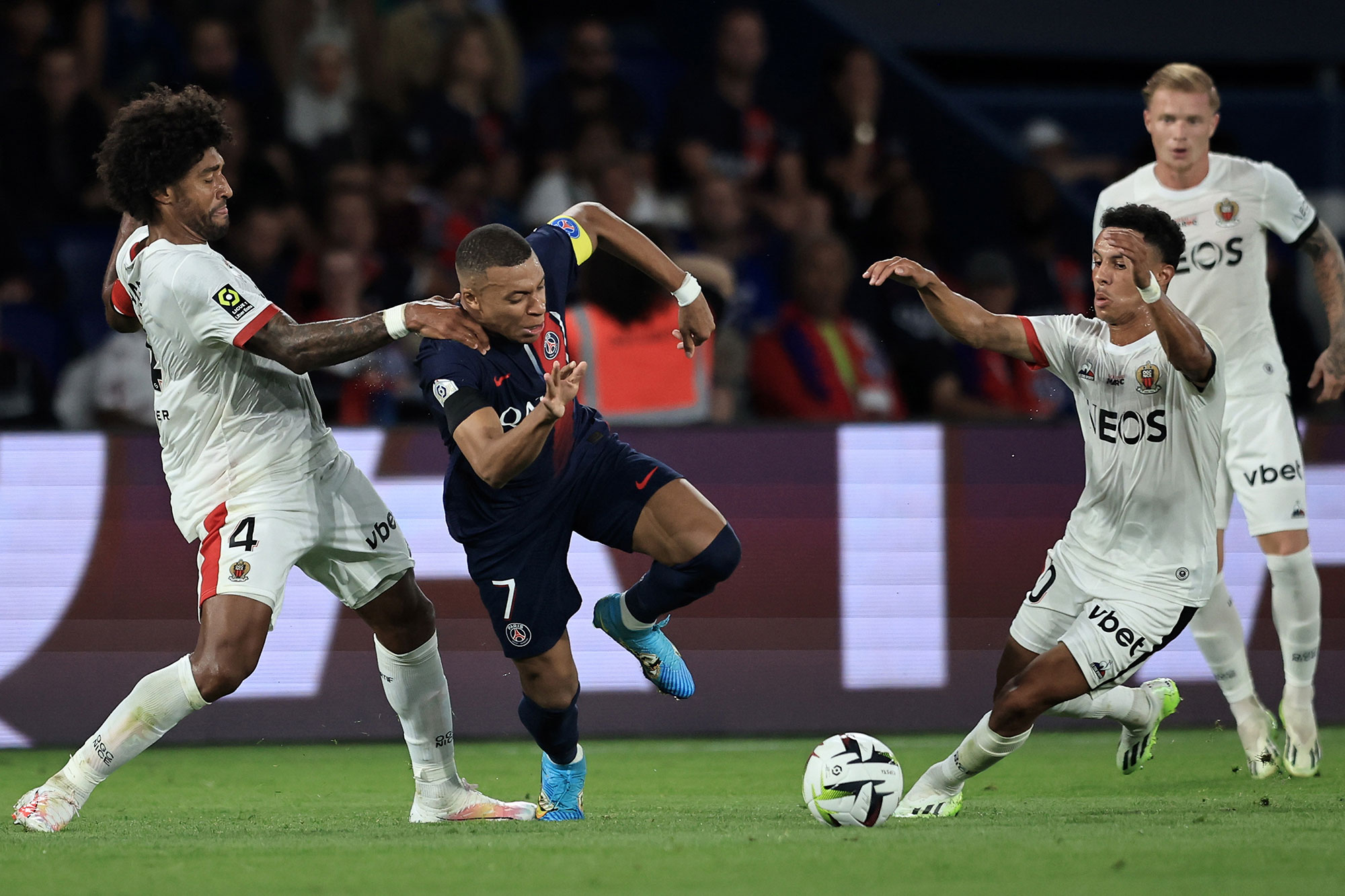 فاز فريق نيس على مضيفه باريس سان جيرمان 3 / 2 خلال المباراة التي جمعتهما مساء الجمعة في الجولة الخامسة من الدوري الفرنسي لكرة القدم.