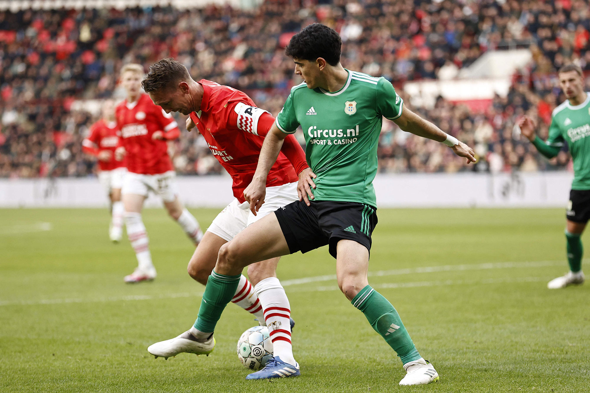 وفي الشوط الثاني، تمكن أيندهوفن من تعزيز تقدمه بتسجيله هدفين آخرين عن طريق لوك دي يونج وماليك تيلمان في الدقيقتين 57 و79.