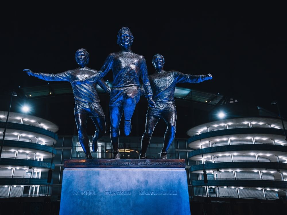 ويقع النصب في مساحة خضراء جديدة، وهو الأحدث في سلسلة من التكريم لشخصيات بارزة تجسد إرث النادي وقد تم الإعلان عن النصب لأول مرة عام 2019 وأشرف عليه معالي خلدون المبارك رئيس النادي والذي تحدث بهذه المناسبة وقال " يكرم هذا التمثال ثلاثة لاعبين وهم بلا شك أساطير نادي مانشستر سيتي وقد تركوا بصمة في تاريخ النادي واستحقوا بجدارة هذه المكانة المتميزة لدى أسرة النادي وجماهيره".
