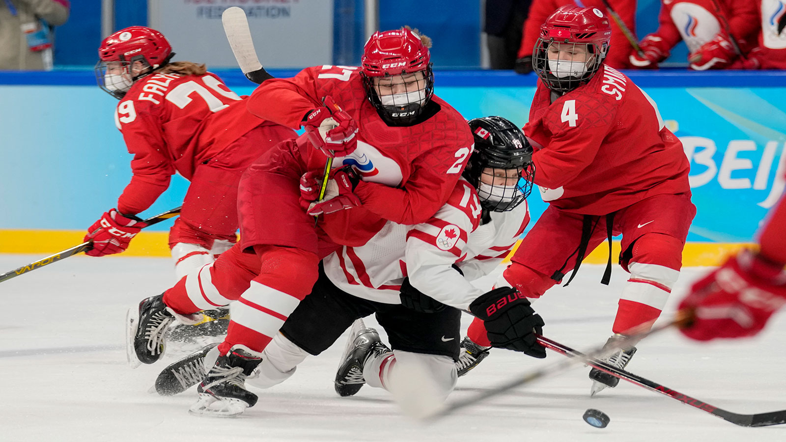وتم تأجيل اللقاء بعد خروج لاعبي كلا المنتخبين إلى الجليد من أجل التحمية قبل اللقاء، بحجة عدم حصول المنتخب الكندي على نتائج الفحص الطبي الخاص بكورونا للاعبات المنتخب الروسي.