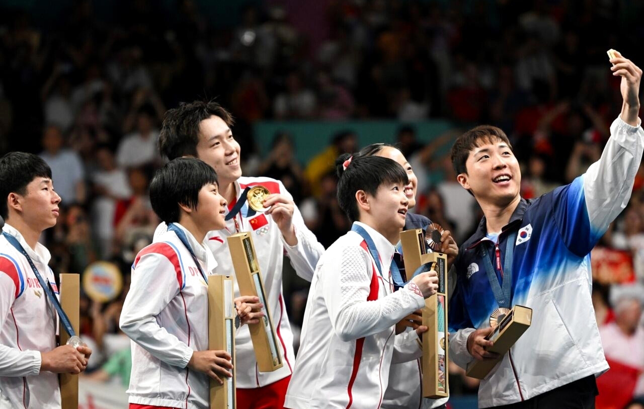 أشعلت صورة «سيلفي» بين لاعبين من الجارتين الكوريتين الجنوبية والشمالية على منصة التتويج ذاتها لمسابقة كرة الطاولة للزوجي المختلط في أولمبياد باريس، مواقع التواصل الاجتماعي أمس، في سياق التوتر الدائم بين سيؤول وبيونغ يانغ. وفي الصورة التي التقطها الكوري الجنوبي جونغ هون ليم مع شريكته يو بين تشين عقب تتويجهما ببرونزية الزوجي المختلط، يظهر الثنائي الكوري الشمالي صاحب الفضية والمكون من جونغ سيك ري وكوم يونغ كيم.
