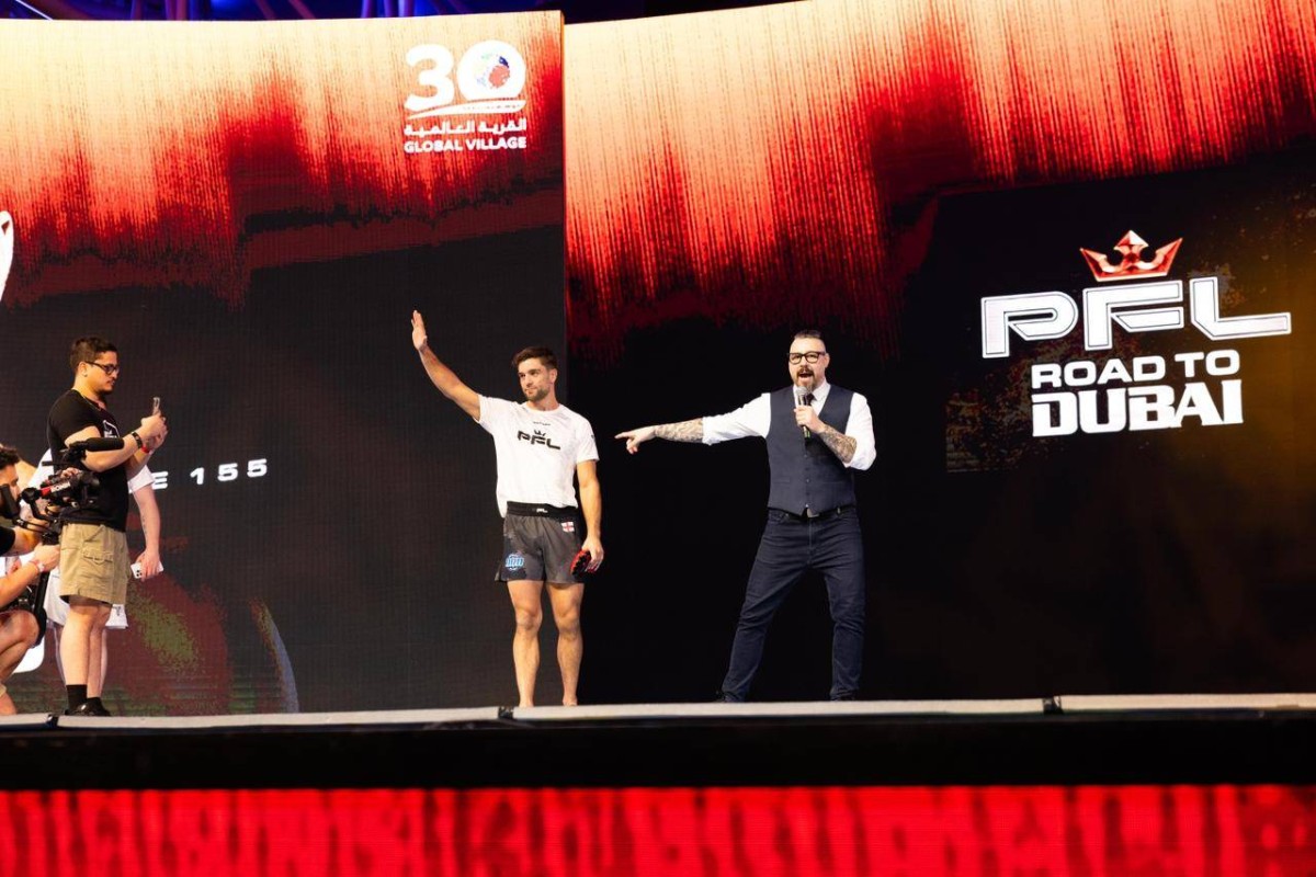 وأقيمت الفعالية على المسرح الرئيسي في القرية العالمية، حيث أتيحت للزوار فرصة متابعة جانب من استعدادات المقاتلين عن قرب، والتعرف على أجواء ما قبل النزال، إلى جانب التقاط الصور التذكارية، في تجربة تفاعلية عكست الزخم المصاحب للبطولة.