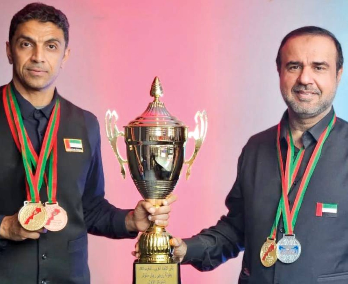 أحرز منتخب الإمارات الميدالية الذهبية في منافسات زوجي السنوكر للرجال، في بطولة كأس الاتحاد العربي للبلياردو والسنوكر، المقامة منافساتها حالياً بمدينة طنجة المغربية، وتختتم بعد غدٍ.