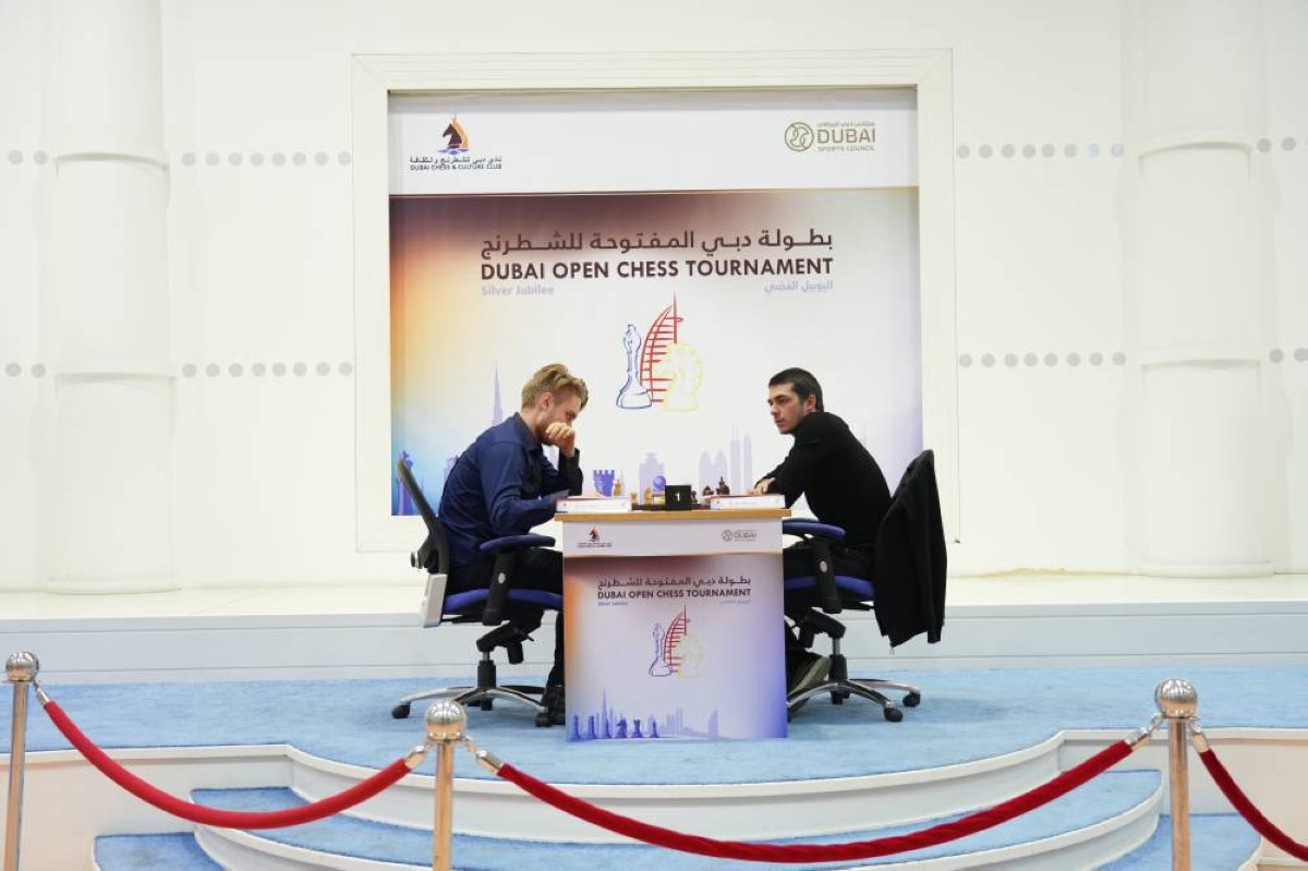 حسم التعادل مباراة القمة بين الأذري محمد مرادلي، حامل اللقب والروسي ألكسي غريبنيف، لحساب الجولة الرابعة من بطولة دبي المفتوحة للشطرنج التي ينظمها نادي دبي للشطرنج والثقافة بمشاركة 182 لاعباً ولاعبة من 37 دولة، ويبلغ مجموع جوائزها المالية 52 ألف دولار وتختتم منافساتها الأربعاء المقبل.