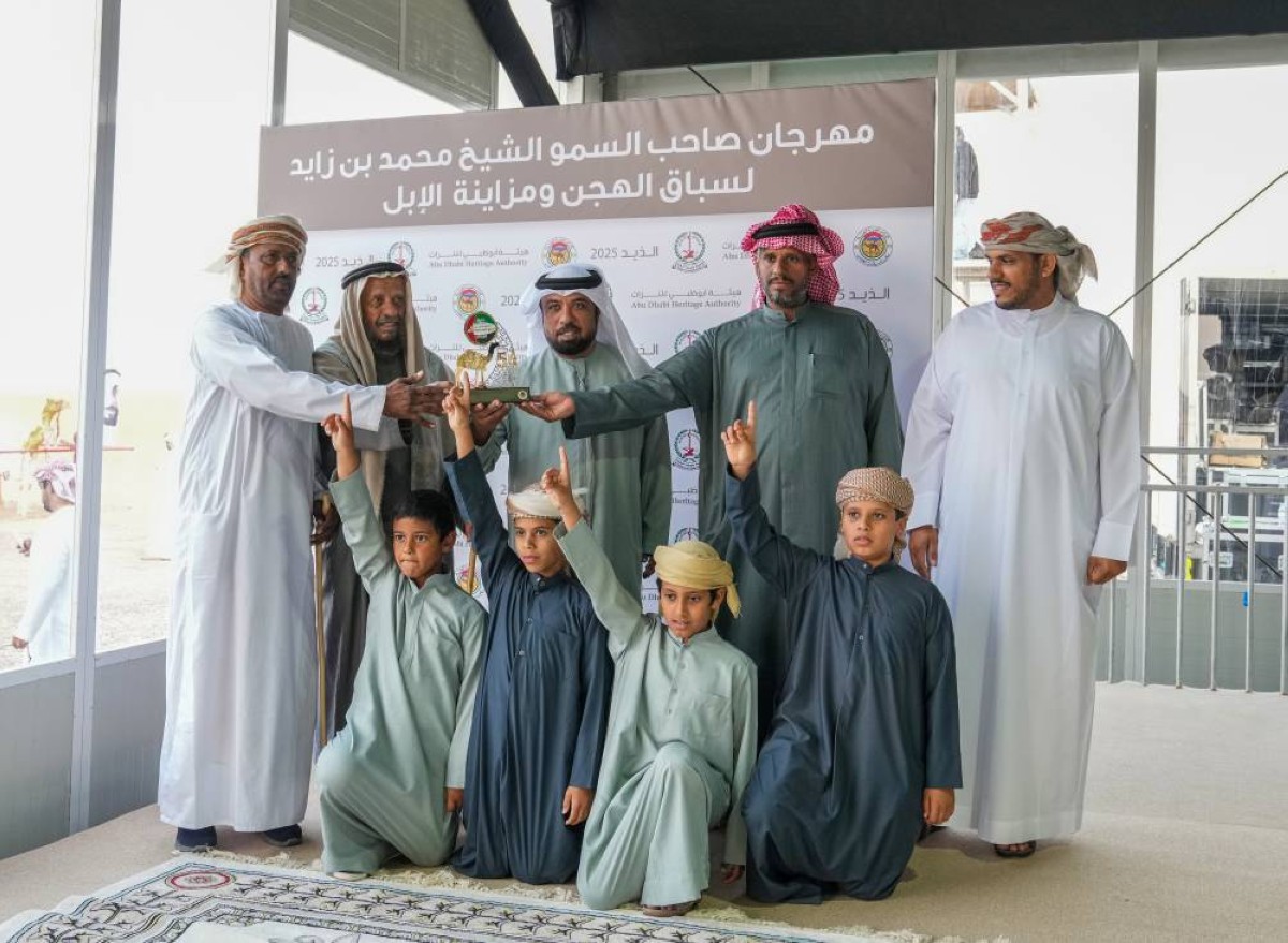 توج مهرجان صاحب السمو الشيخ محمد بن زايد آل نهيان، لسباقات الهجن العربية الأصيلة ومزاينة الإبل «الذيد 2025 - 2026»، مساء اليوم، الفائزين بمزاينة الإبل لسن المفاريد «المحليات والمهجنات الأصايل»، ضمن 4 أشواط ضمن لها 40 جائزة، وذلك في منصة مزاينة الإبل في ميدان الذيد بالشارقة. وتوج عبيد خلفان المزروعي، المدير التنفيذي لقطاع المهرجانات والفعاليات في هيئة أبوظبي للتراث، الفائزين في المنافسات، بحضور عدد من مُلاك الإبل في الإمارات ودول مجلس التعاون لدول الخليج العربية وجمهور مزاينات الإبل.