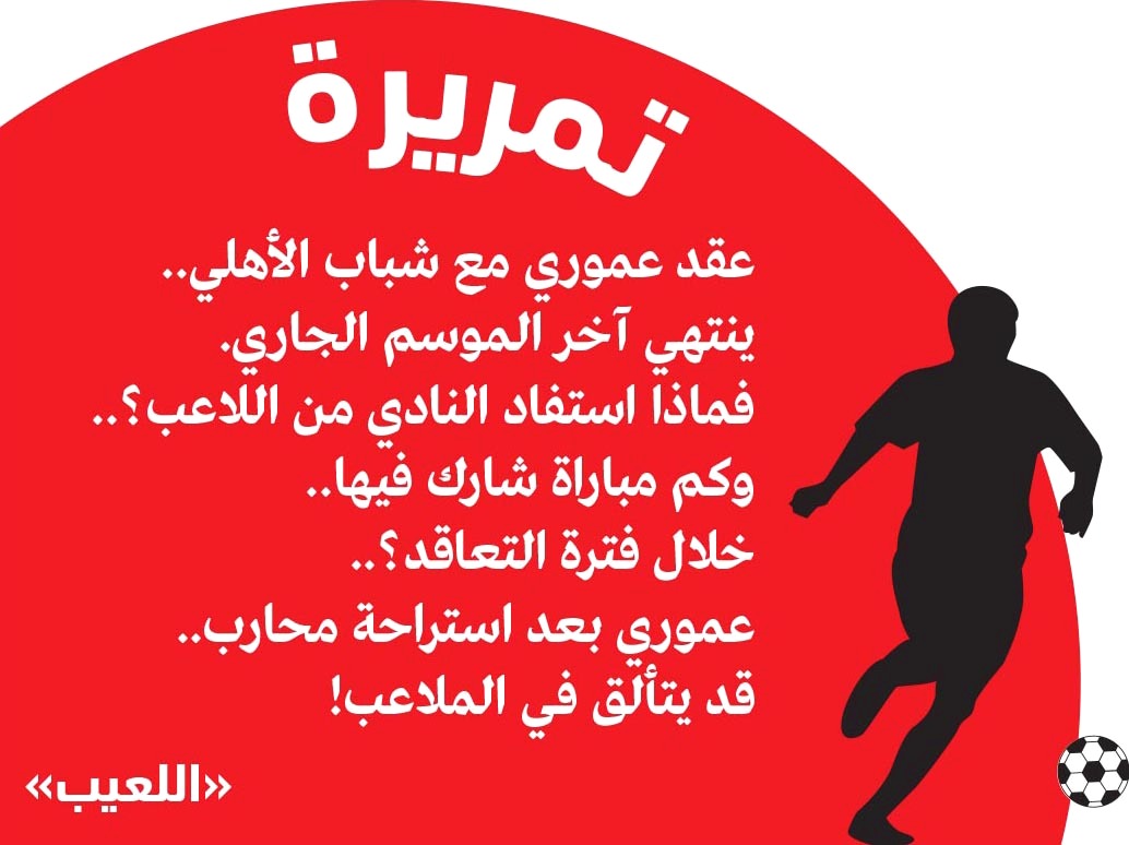 استراحة محاربعقد عموري مع شباب الأهلي.. ينتهي آخر الموسم الجاري. فماذا استفاد النادي من اللاعب؟.. وكم مباراة شارك فيها.. خلال فترة التعاقد؟.. عموري بعد استراحة محارب.. قد يتألق في الملاعب!