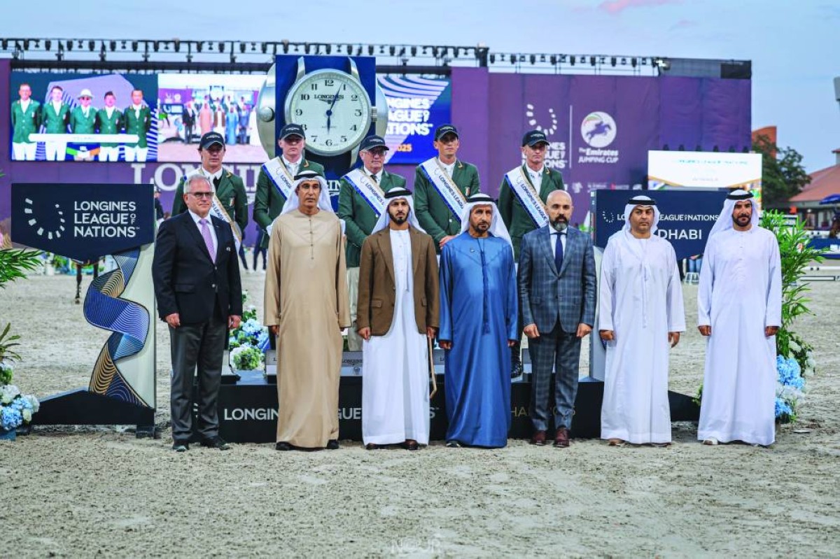 أحرز الفريق الإيرلندي لقب كأس «جولة أبوظبي،» أولى جولات دوري لونجين للأمم في نسخته الثانية 2025، بينما حصد فريق الإمارات فضية المركز الثاني، وأقيمت الفعاليات مساء أول من أمس بالتزامن مع النسخة الأولى لبطولة كأس الإمارات لقفز الحواجز، فئة خمس نجوم، والتي نظمها اتحاد الإمارات للفروسية والسباق، في منتجع الفرسان الرياضي الدولي في أبوظبي وبمشاركة 43 فارساً وفارسة، وجوائزها 700 ألف يورو.