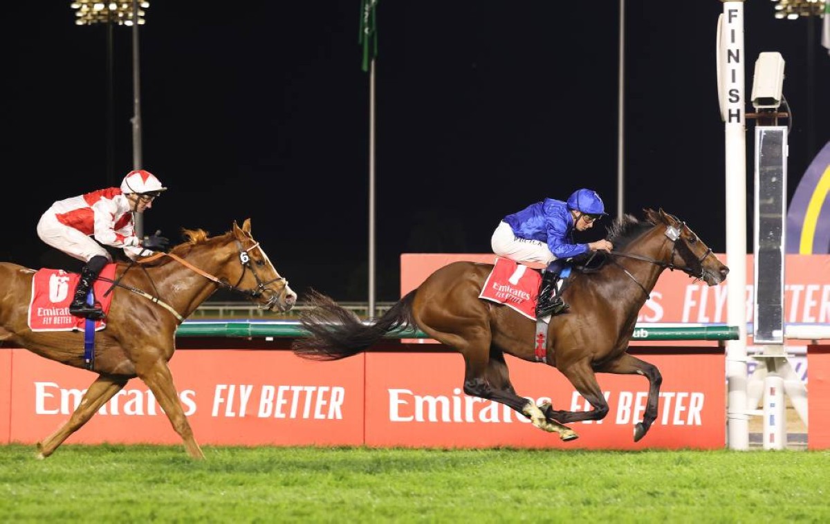 وتألقت خيول جودلفين في أمسية سوبر ساترداي بعدما سجلت رباعية قوية مع المدرب شارلي أبلبي والفارس وليام بيوك، حيث تأهل «نيشنز برايد» بالشعار الأزرق الملكي إلى سباق «دبي تيرف» للفئة الأولى في أمسية كأس دبي العالمي بعد فوزه بلقب «سنجسبيل ستيكس» من «الفئة الثانية» لمسافة 1800 متر على المسار العشبي مسجلاً زمناً قدره 1.47.24 دقيقة.