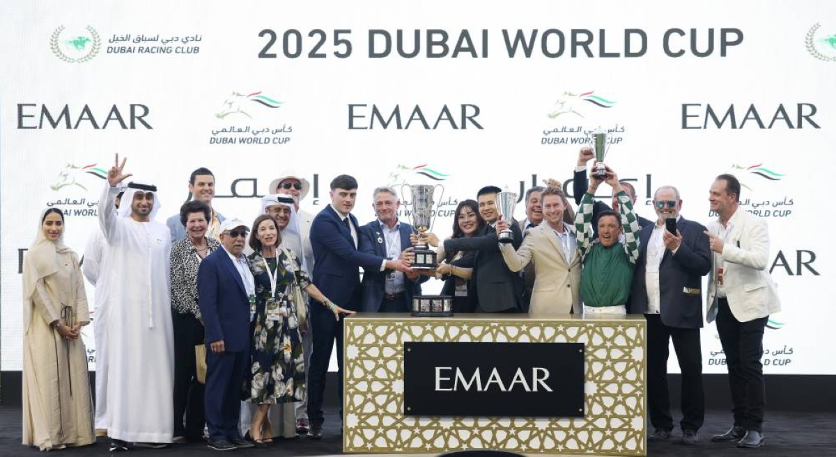 برهن «راغينغ تورنت» على تألق الخيول الأمريكية في الأمسية العالمية بعد أن نجح في حسم الشوط الثالث المخصص للخيول عمر 4 سنوات وما فوق لمسافة 1600 متر في المضمار الرملي، ليظفر بلقب بطولة «جودلفين للميل»، برعاية «إعمار»، بمجموع جوائز مليون دولار.
