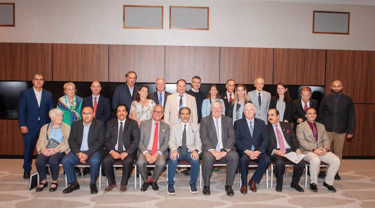 فيصل الرحماني يتوسط أعضاء الجمعية العمومية للاتحاد الدولي «إفهار» خلال الاجتماع