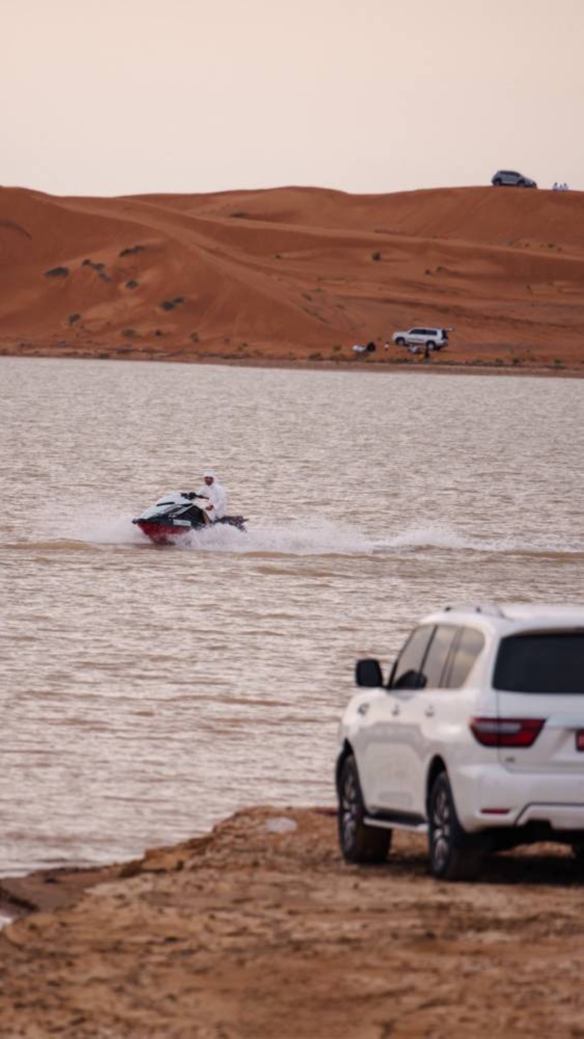 شكل «منخفض العزم» الذي مرت به البلاد خلال الأيام الأخيرة، العديد من البحيرات والمسطحات المائية بمدينة العين، والتي أصبحت من أبرز المزارات الطبيعية والسياحية، ووسط الكثبان الرملية الذهبية في منطقة الفوعة بـ «دار الزين»، جذبت البحيرة التي تكونت بعد هطول الأمطار عشاق الرياضات المائية، الذين مارسوا رياضة التجديف وركوب الدراجات المائية، ولم تعد تلك الرياضات مجرد هواية لقضاء الوقت، بل أصبحت نشاطاً يومياً يمارسه عدد متزايد من «الهواة» من مختلف الأعمار، ملتزمين بإجراءات السلامة التي تكفل الأمان لهم وقت مُمارستهم الهواية الجديدة.