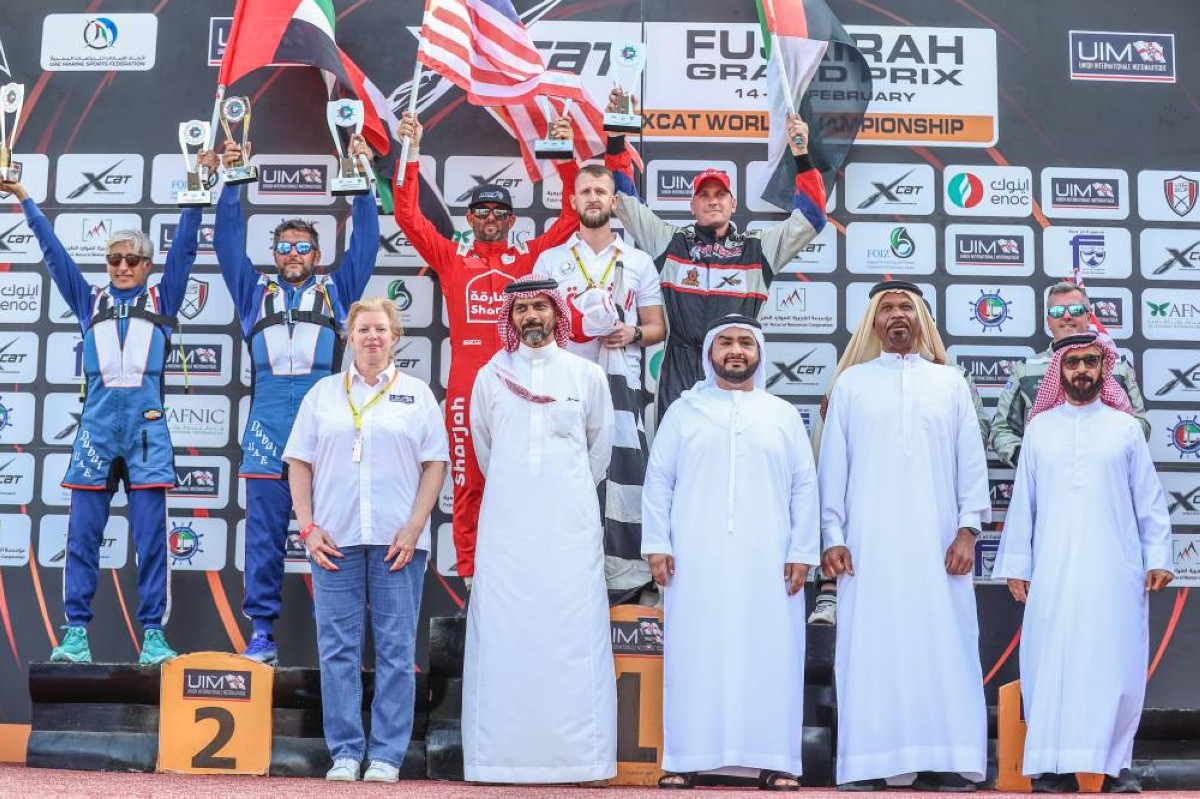 توج الشيخ أحمد بن حمد بن سيف الشرقي زورق الشارقة بقيادة الثنائي ميخائيل كوستشوف وشون ترورنتي بلقب سباق الجولة الأولى لجائزة الفجيرة الكبرى من بطولة العالم لسباق الزوارق السريعة فئة إكس كات، والتي يحتضنها نادي الفجيرة الدولي للرياضات البحرية وتختتم اليوم الأحد.