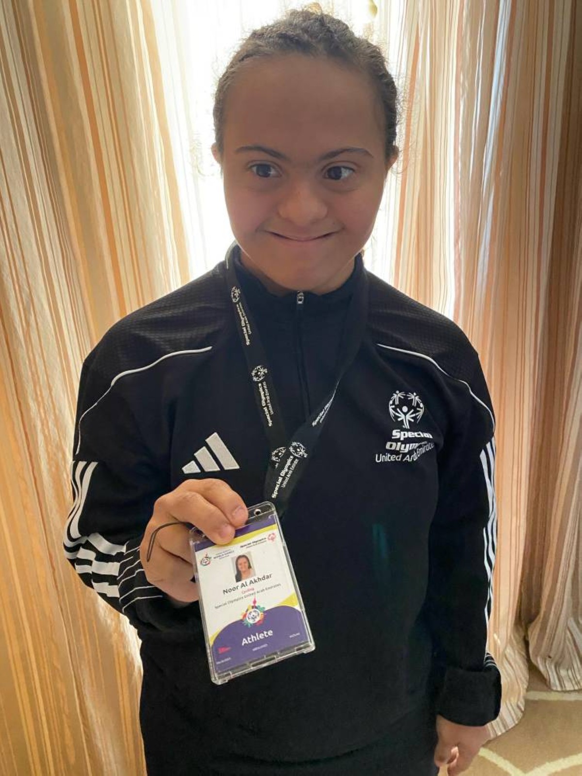 تُعد نور الأخضر إحدى بطلات أصحاب الهمم، حيث وُلدت بمتلازمة داون وتم تشخيصها لاحقاً بالتوحد، وقد بدأت مسيرتها الرياضية بدافع شغفها بالحركة والنشاط منذ الطفولة، لتتألق لاحقاً في مجالات السباحة وركوب الدراجات. وقد مثّلت الأولمبياد الخاص الإماراتي في الألعاب العالمية الصيفية – برلين 2023، وحققت حضوراً مميزاً نال إعجاب الجميع.