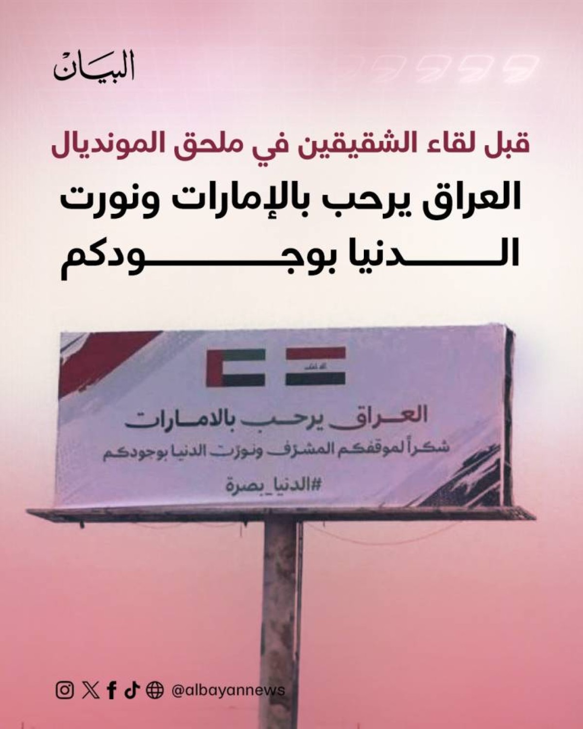 قبل يومين فقط من إياب الملحق الآسيوي المؤهل إلى كأس العالم 2026، بين منتخب الإمارات الوطني وشقيقه المنتخب العراقي بالبصرة، وجّه رئيس الوزراء العراقي محمد شياع السوداني، الجهات المعنية بتسهيل دخول المشجعين الإماراتيين، في مبادرة اعتبرها مستخدمون «تعكس الروح الأخوية بين البلدين، وتؤكد جاهزية العراق لاستضافة الاستحقاقات الكبرى»، كذلك شهدت منصّات التواصل في العراق موجة كبيرة من التفاعل والترحيب بالجماهير الإماراتية المتوقع وصولها إلى البصرة لمساندة «الأبيض»، في المواجهة المرتقبة أمام «أسود الرافدين»، مساء الثلاثاء، وتداول عراقيون عشرات المقاطع والمنشورات التي تُظهر استعدادات جماهيرية لاستقبال «الضيوف» من الإمارات، ووضعت لافتات الترحيب بالإمارات والمنتخب الوطني في شوارع البصرة، وبدت مظاهرة حب بين الشقيقين، فيما أكدت رابطة المشجعين العراقيين جاهزيتها لتقديم كل أشكال الدعم اللوجستي للجماهير القادمة، وهي بادرة وجدت صدى واسعاً بين المتابعين الذين وصفوها بـ «الصورة الحضارية» للعراق الرياضي.
