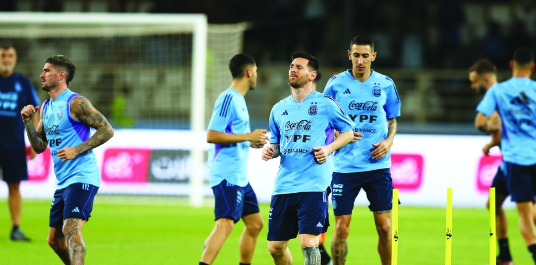 أشعل النجم ليونيل ميسي الأجواء في أبوظبي خلال تدريبات المنتخب الأرجنتيني في العاصمة الإماراتية استعداداً لنهائيات كأس العالم قطر 2022، ووصل ميسي إلى أبوظبي صباح أمس للانضمام لمعسكر «التانغو» في أبوظبي ضمن المرحلة الأخيرة من تحضيراته قبل التوجه إلى الدوحة لخوض منافسات كأس العالم.