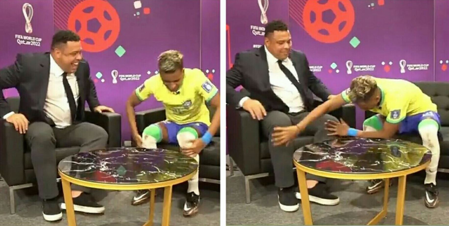 بنهاية مباراة البرازيل وسويسرا، التي انتهت بهدف كاسميرو من صناعة الفتى الذهبي رودريغو انتشر على مواقع التواصل الاجتماعي مقطع فيديو يظهر فيها لاعب نادي ريال مدريد، والمنتخب البرازيلي رودريغو إلى جانب أسطورة كرة القدم البرازيلية رونالدو في مقابلة تلفزيونية، وفي نهاية المقابلة صافح رودريغو ملهمه الأول رونالدو، ثم انحنى ليلمس قدمي الظاهرة، ويعود ليلمس قدميه، في لقطة طريفة بدا كأنه يسعى من خلالها، للحصول على شيء من السحر الكروي للنجم السابق المتوج بكأس العالم مع منتخب البرازيل في 1994 و2002، وعرفت اللقطة على مواقع التواصل الاجتماعي بلقطة «بركاتك يا رونالدو».