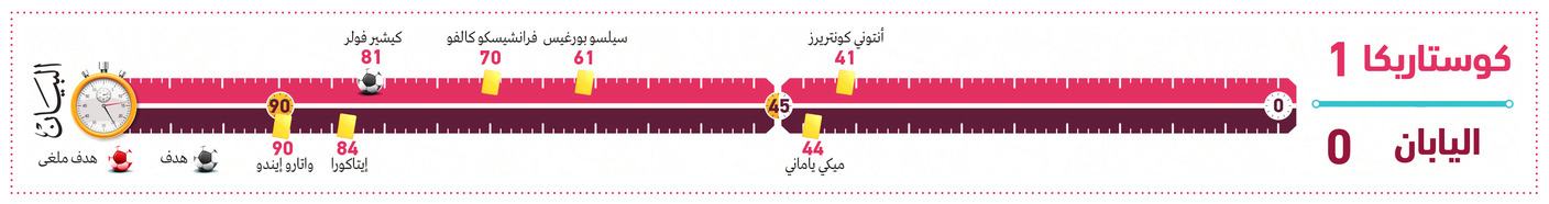 وارتكب مدرب اليابان هاجيمي مورياسو، الذي تلقى إشادة كبيرة بعد إدارته الخططية الرائعة خلال الفوز على ألمانيا بالجولة الأولى، أخطاء في التشكيلة منحت كوستاريكا فوزاً مفاجئاً مماثلاً لتشتعل معركة التأهل لدور 16 من المجموعة الخامسة في كأس العالم لكرة القدم.
