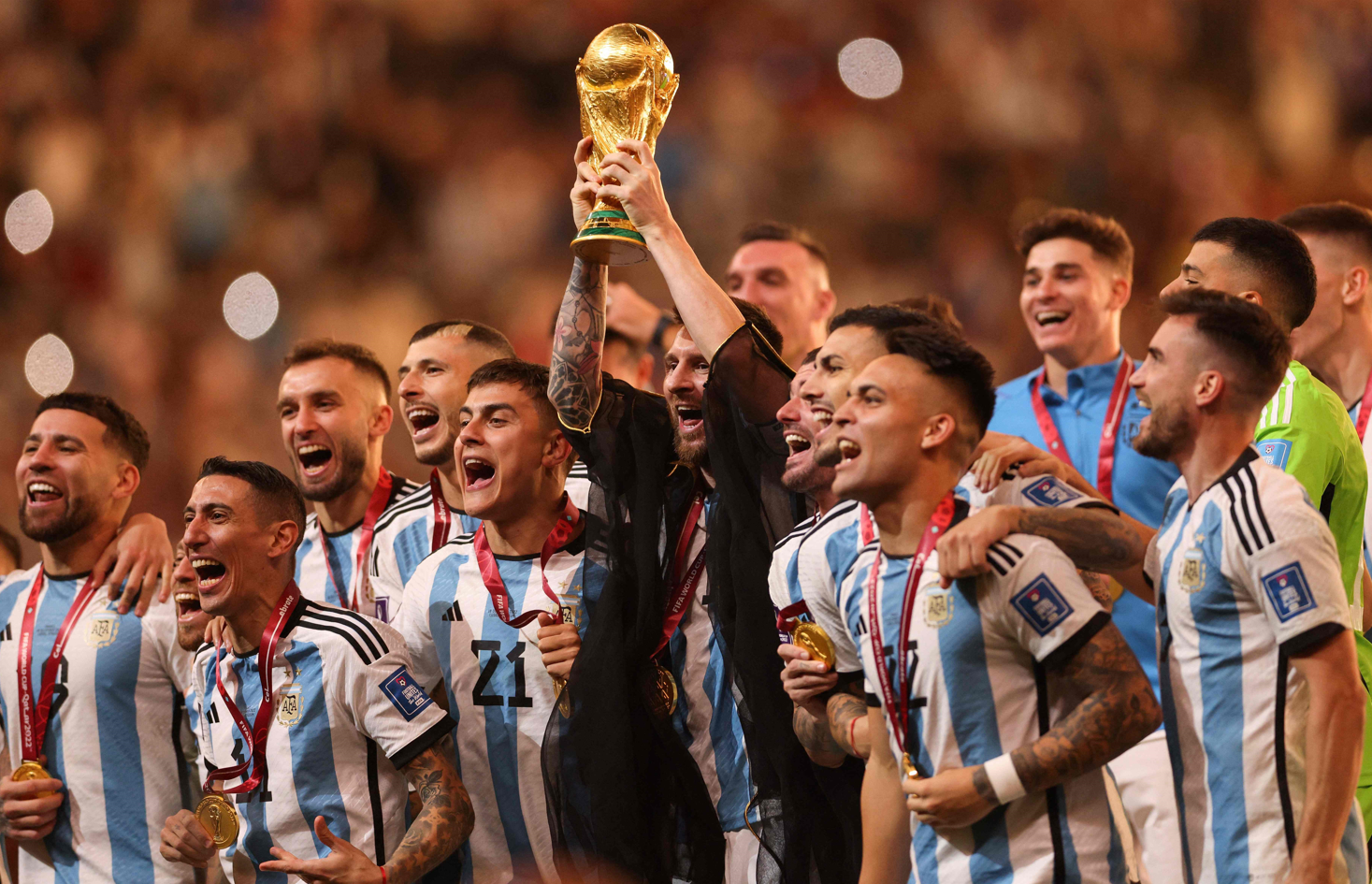 قاد الساحر ليونيل ميسي المنتخب الأرجنتيني للتتويج بلقب كأس العالم للمرة الثالثة في تاريخه والأولى منذ 36 عاما بعد الفوز على نظيره الفرنسي 4 /2 بركلات الجزاء الترجيجية اليوم الأحد في المباراة النهائية لمونديال قطر 2022 عقب انتهاء الوقتين الأصلي والإضافي بالتعادل 3 /3.