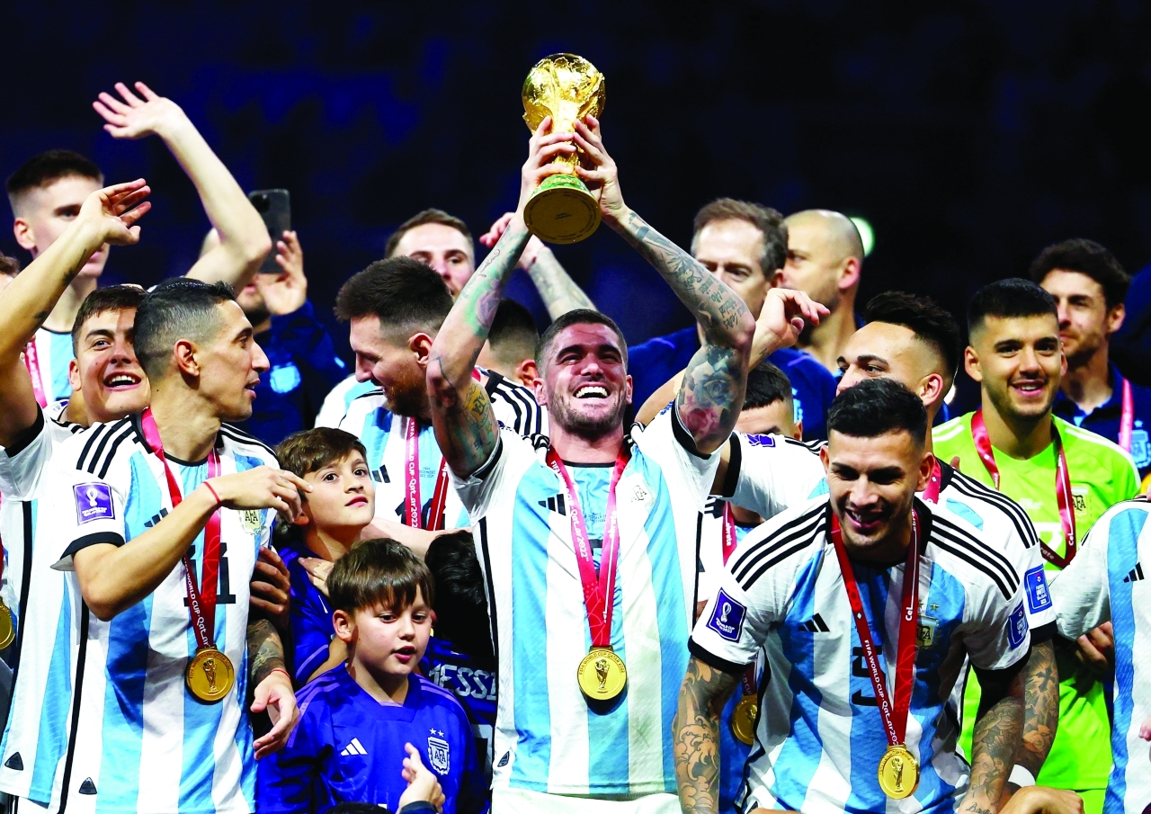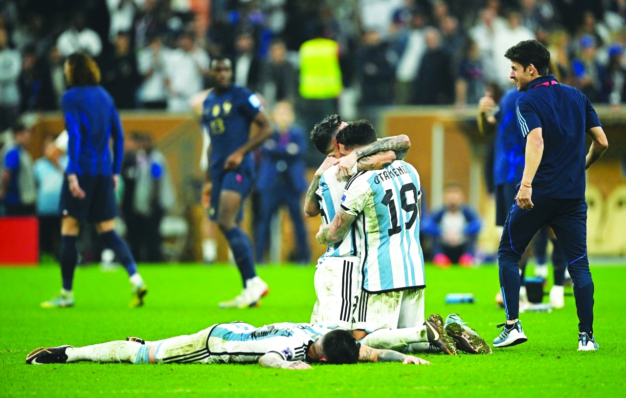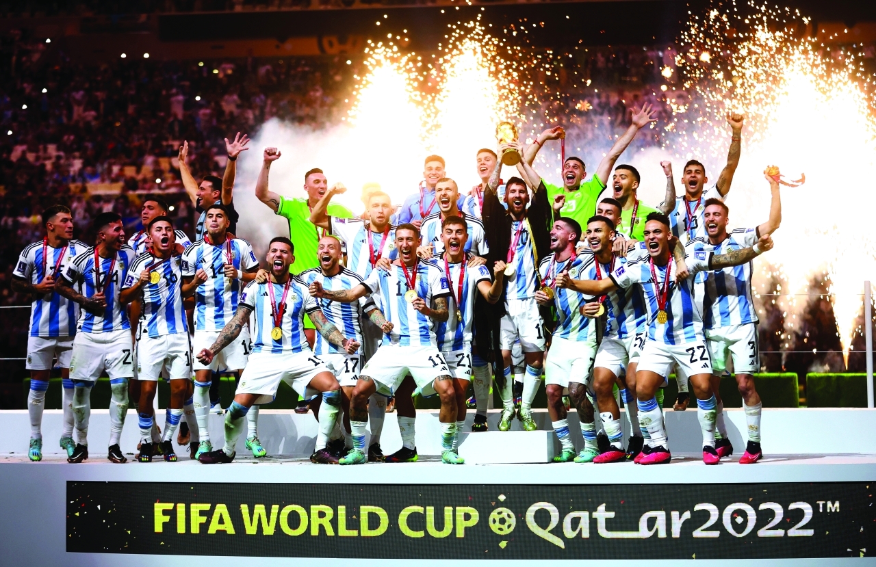 قاد الساحر ليونيل ميسي المنتخب الأرجنتيني للتتويج بلقب كأس العالم للمرة الثالثة في تاريخه والأولى منذ 36 عاماً بعد الفوز على نظيره الفرنسي 4 /‏‏2 بركلات الجزاء الترجيحية، أمس، في المباراة النهائية لمونديال قطر 2022، بعد انتهاء الوقتين الأصلي والإضافي بالتعادل 3 /‏‏3. وتألق ليونيل ميسي في صفوف المنتخب الأرجنتيني بتسجيله هدفين، كما أبدع كيليان مبابي في صفوف منتخب فرنسا بتسجيله ثلاثة أهداف (هاتريك). وفي حضور نحو 89 ألف مشجع باستاد لوسيل، تقدم ليونيل ميسي بهدف للمنتخب الأرجنتيني من ضربة جزاء في الدقيقة 23، ثم أضاف أنخل دي ماريا الهدف الثاني للتانغو في الدقيقة 36 بعد هجمة مرتدة سريعة.