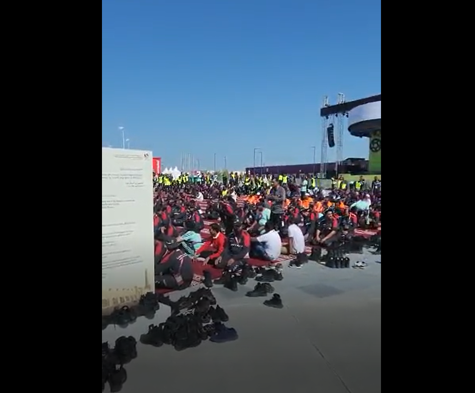 شهد محيط ملعب أحمد بن علي بقطر إقامة صلاة الجمعة لجماهير المونديال، وذلك قبيل  انطلاق مواجهة منتخب إيران ومنتخب ويلز، ضمن مباريات الجولة الثانية من دور المجموعات في نهائيات كأس العالم المقامة حالياً بقطر.
