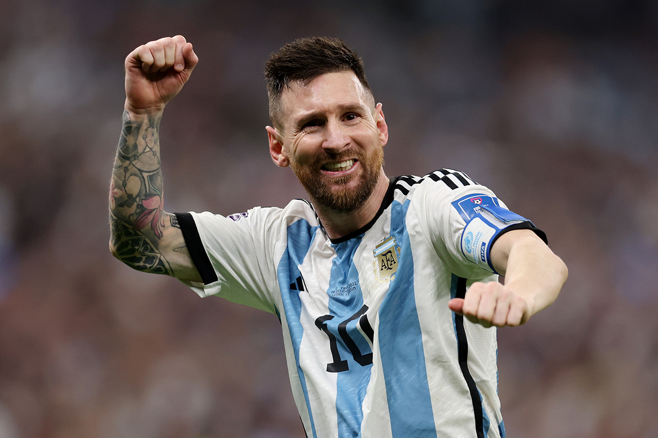 ميسي الذي سجل هدفين خلال مباراة النهائي، كان أول لاعب ينزل من الطائرة حاملا كأس البطولة وبعده مباشرة مدرب المنتخب ليونيل سكالوني.