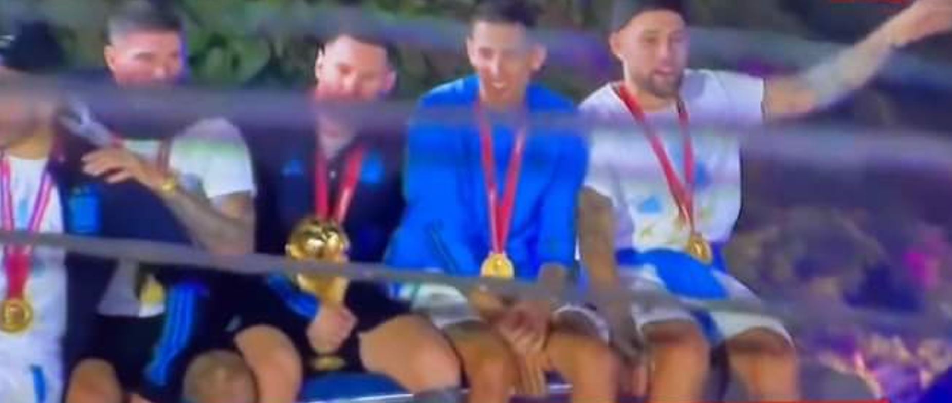وأظهرت لقطات فيديو تفادي اللاعبين بصعوبة مجموعة أسلاك كهربائية كانت قريبة للغاية من أعلى الحافلة حيث جلس ميسي وسط زملاء في موكب الاحتفال.
