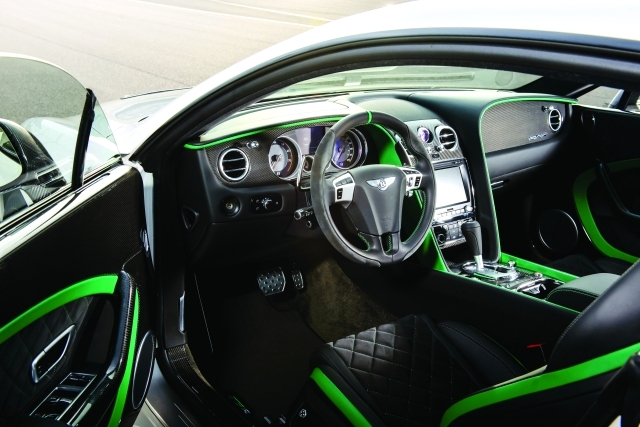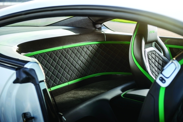 ويشتمل التصميم ذو المقعدين على زوج مقاعد رياضية فاخرة مع دعم جانبي إضافي عبر مساند أعمق وطبقات من الرغوة بتصميم جديد لتعزيز مستويات الراحة، إضافة إلى تميّزها بكسوة من جلد بيلوغا الأسود ذي الإضافات بشكل قطع الألماس من جلد القنطرة. وهذه المواد الفاخرة تضاف أيضاً بشكل يدوي إلى عجلة القيادة ومقبض ناقل الحركة بينما يتألّق الكونسول الوسطي وألواح الواجهة الأمامية بلمسات من ألياف الكربون المصنوعة يدوياً.