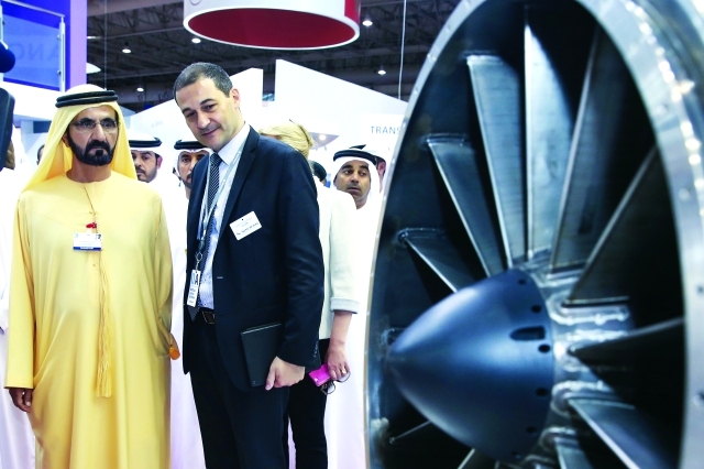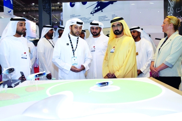 واستكمل سموه يرافقه سمو الشيخ مكتوم بن محمد بن راشد آل مكتوم نائب حاكم دبي وخليفة سعيد سليمان مدير عام دائرة التشريفات والضيافة في دبي جولته في أرجاء المعرض لليوم الثاني على التوالي مستهلاً سموه جولته في جناح شركة كوازاكي اليابانية الشهيرة بتصنيع الطائرات المدنية والدراجات النارية وأنظمتها الإلكترونية المتطورة. واستمع سموه من القائمين على الجناح الى أهم المبتكرات الجديدة التي توصلت إليها الشركة في مجال تصنيع الطائرات وتقنياتها الحديثة. ثم توقف سموه في جناح جمهورية ألمانيا الاتحادية التي تشارك بقوة في هذا المعرض الدولي من خلال مجموعة من الشركات العملاقة المتخصصة في تصنيع أجهزة ومعدات وأنظمة الطيران الحديثة. واستمع سموه من مسؤولي الشركات المشاركة في الجناح الذي يعد من بين أكبر الأجنحة في المعرض الى شرح حول منتجات شركاتهم التي تركز في معظمها على التقنيات الحديثة والسلامة الجوية.