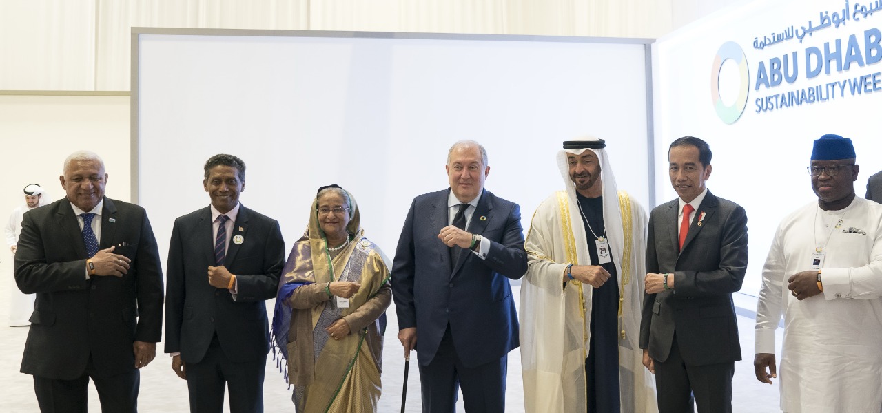 دعم قادة ورؤساء 9 دول "اكسبو2020 دبي" خلال افتتاح أسبوع أبوظبي للاستدامة اليوم في أبوظبي، حيث افتتح صاحب السمو الشيخ محمد بن زايد آل نهيان ولي عهد أبوظبي نائب القائد الأعلى للقوات المسلحة دورة هذا العام من "أسبوع أبوظبي للاستدامة 2020 " الذي يقام تحت عنوان "تسريع وتيرة التنمية المستدامة " في مركز أبوظبي الوطني للمعارض "أدنيك "، بحضور وهم جوكو ويدودو رئيس جمهورية إندونيسيا والدكتور أرمين سركيسيان رئيس جمهورية أرمينيا وداني فور رئيس جمهورية سيشل وإبراهيم بوبكر كيتا رئيس جمهورية مالي وجوليوس مادا بيو رئيس جمهورية سيراليون وبول كاجامي رئيس جمهورية رواندا وآنا برنابيتش رئيسة مجلس الوزراء في جمهورية صربيا والشيخة حسينة واجد رئيسة وزراء جمهورية بنغلاديش الشعبية وخوسايا فوريكي باينيماراما رئيس وزراء جمهورية جزر فيجي.