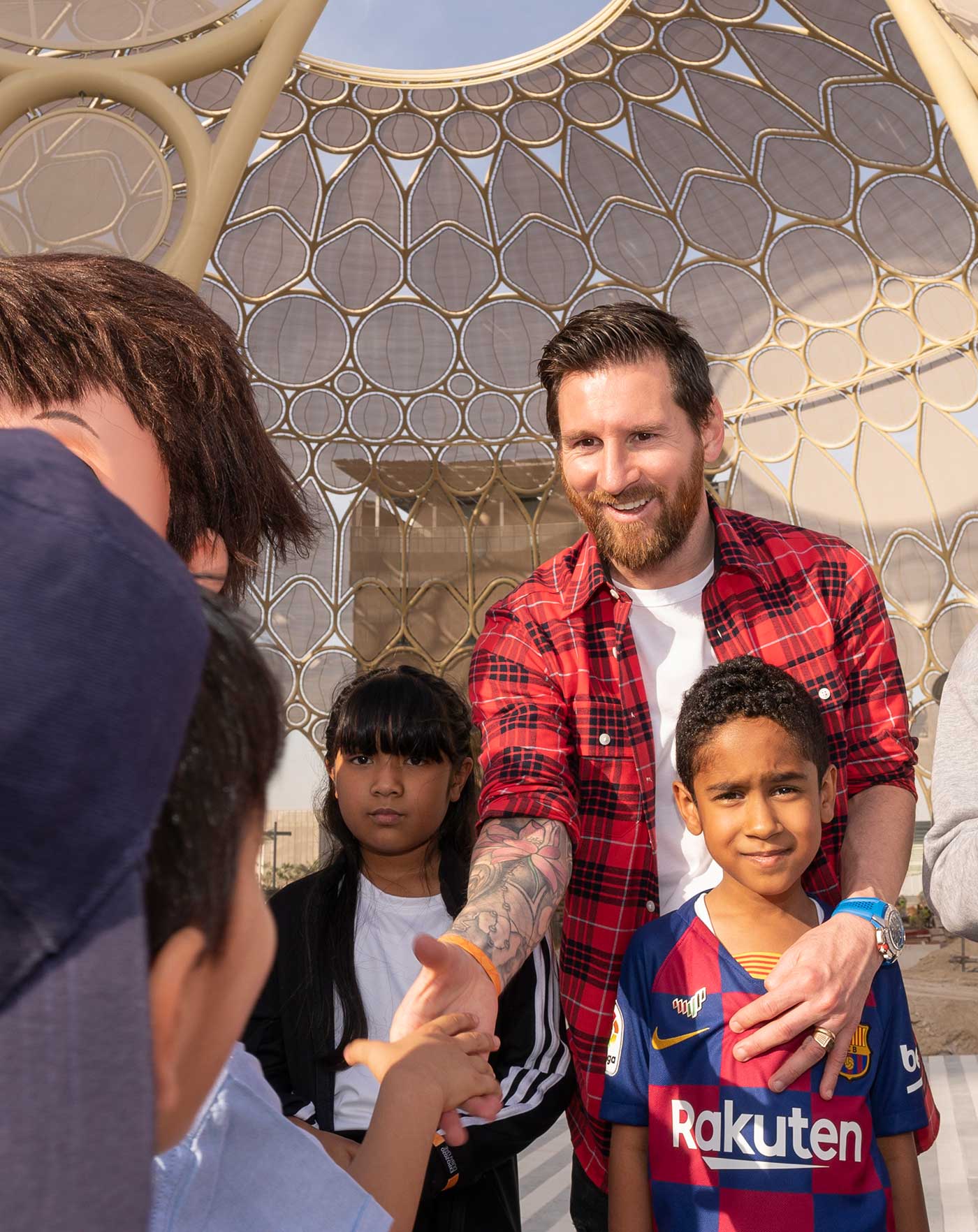 وزار ميسي، موقع الحدث الأروع في العالم وأكبر محفل لاستعراض إبداعات البشرية وإنجازاتها. وخلال زيارته اصطحب ميسي الطلّاب في جولة في ساحة الوصل، حيث التقط صوراً معهم ووقّع لهم على هدايا تذكارية شملت كرات قدم وأحذية للعب كرة القدم. وانضمت للجولة شخصيتا إكسبو 2020 دبي، راشد ولطيفة.
