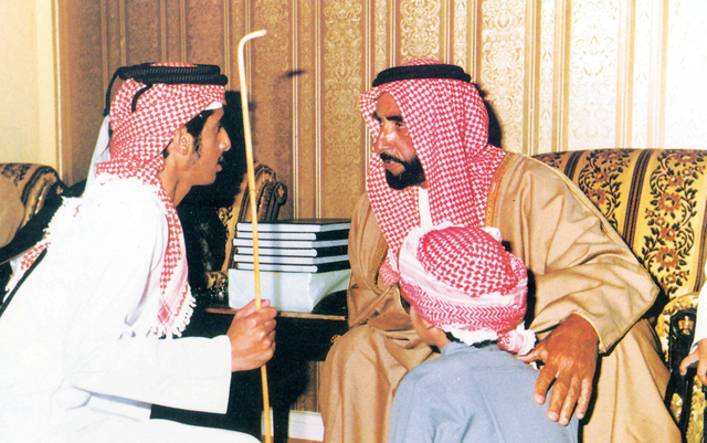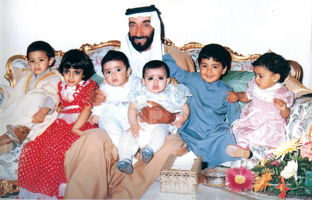 صاحب السمو رئيس الدولة، رجل بسيط إلى أقصى درجة، قلبه كقلب طفل صغير، لا يعرف الكراهية، وهو هادئ الطباع يحرص على الاستماع أكثر مما يحرص على الكلام، وهو أب حنون وجد رائع، كان يداعب أبناءه مثلما يفعل أي أب، والآن تبلغ سعادته عنان السماء حينما يجلس مع أحفاده، ويضع لهم الطعام في أفواههم بيديه.