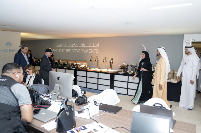 واطلع صاحب السمو الشيخ محمد بن راشد آل مكتوم خلال الزيارة التي رافق سموها فيها معالي محمد بن عبد الله القرقاوي، وزير شؤون مجلس الوزراء والمستقبل رئيس القمة العالمية للحكومات، على التجهيزات المتكاملة في المركز الإعلامي، الذي تم تصميمه وتجهيزه ليلبي كافة احتياجات الإعلاميين.