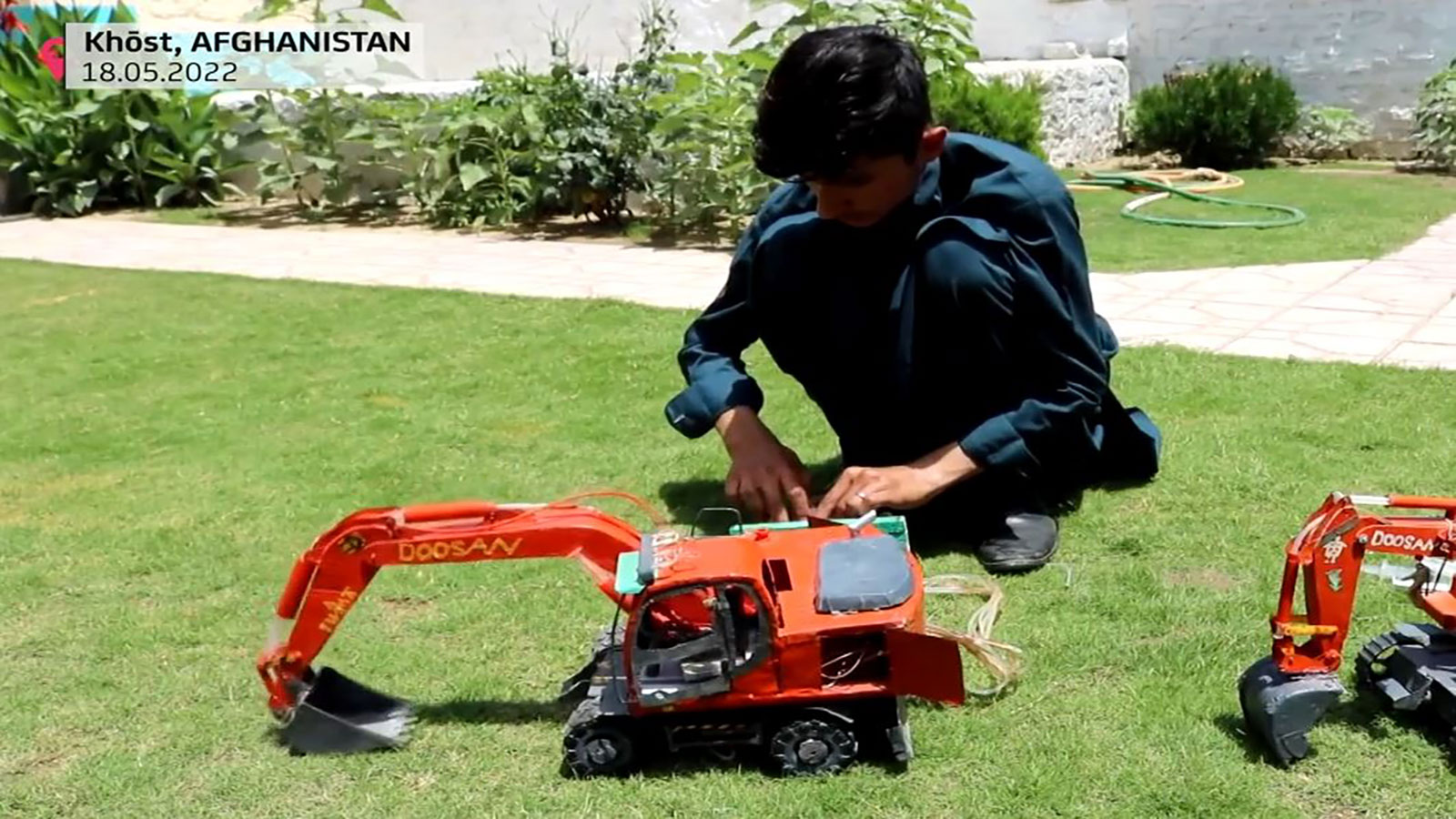 يبدع مراهق أفغاني في صناعة نماذج مصغرة من المركبات ومعدات الحفر باستخدام مواد من النفايات.